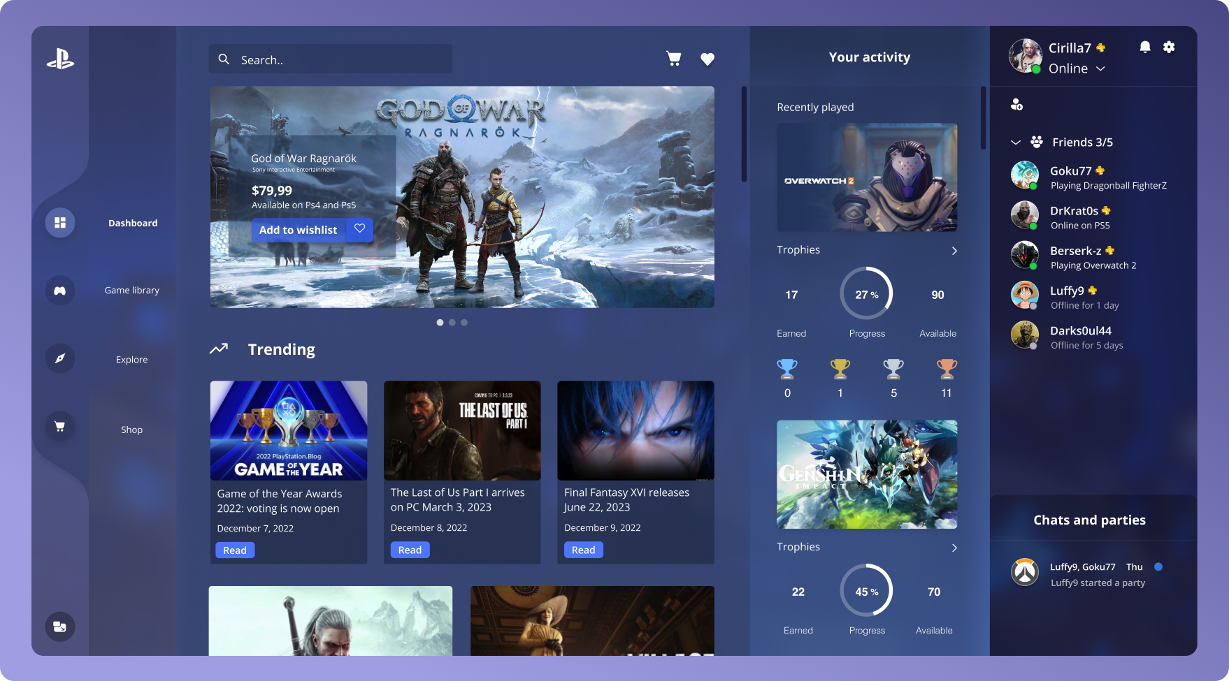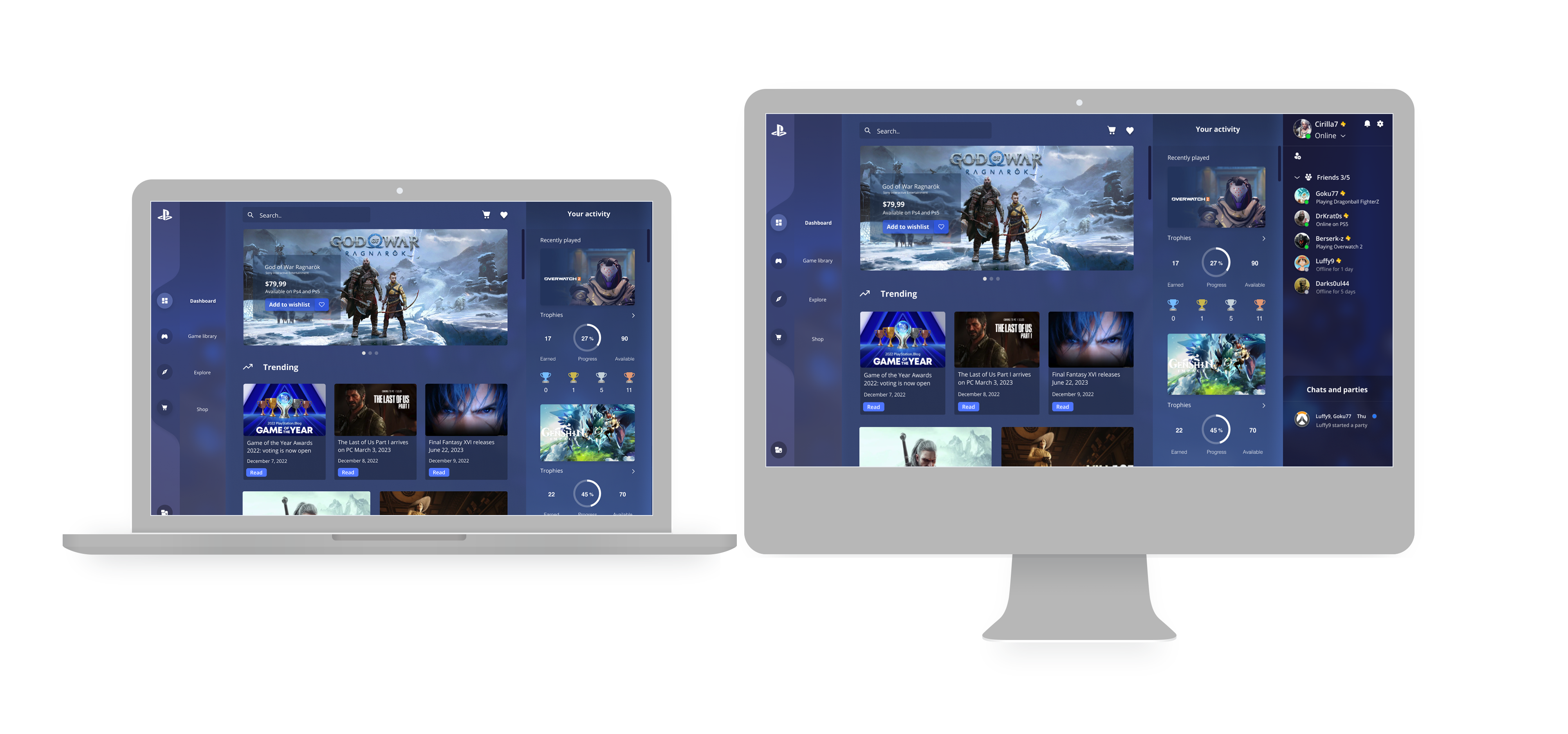 The PlayStation app inspired me to create a desktop app, because I think it would make it more accessible for users to browse through games, purchase games, manage their settings and connecting with others in their own time.