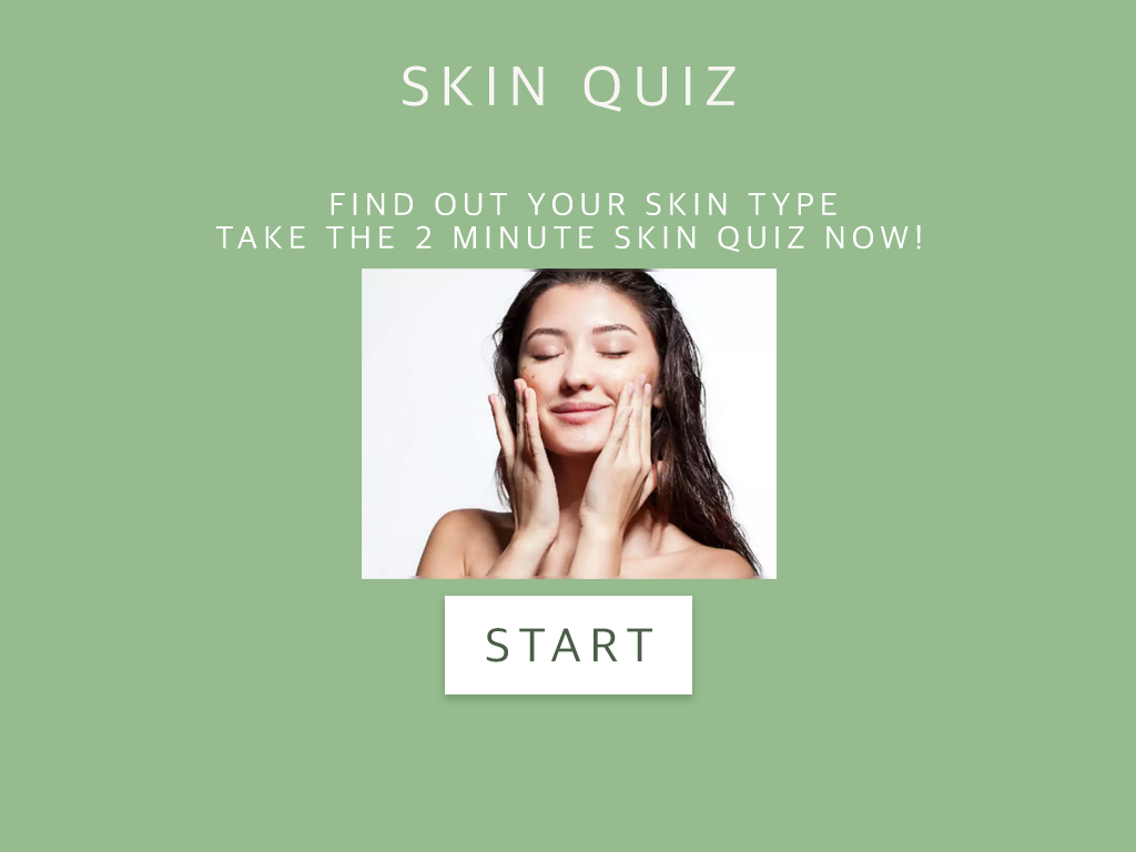 The second concept is a skin type quiz. By completing this 2-minute quiz, they will find out their skin type and will be recommended a product that matches their skin type.