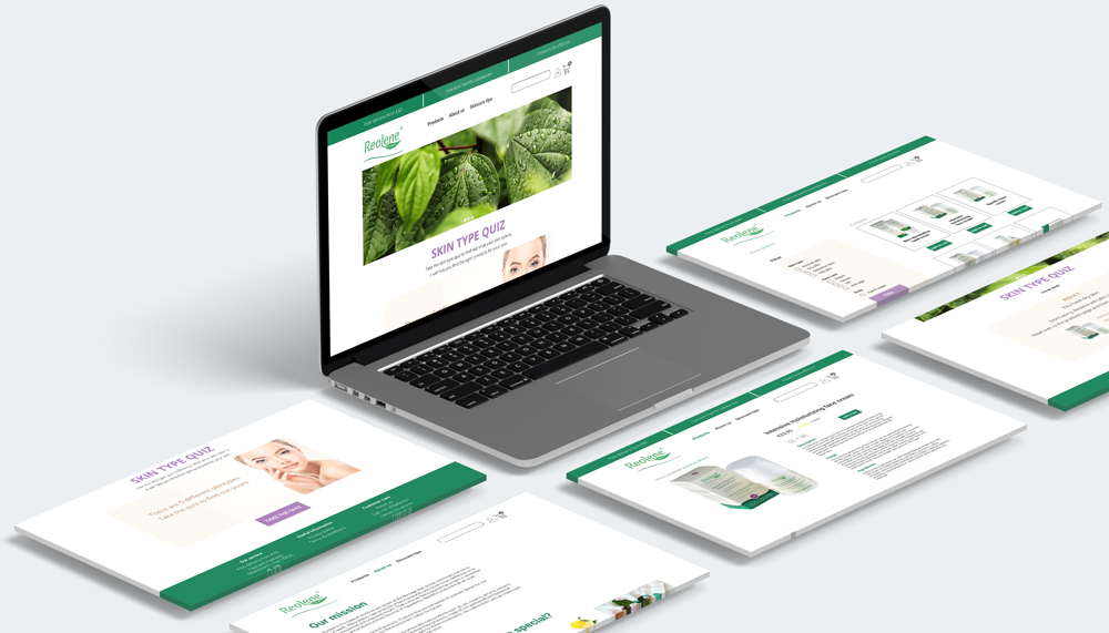 Reolene is a skincare brand that offers a wide range of beauty care products in the area of facial care, body care and hair care; A natural beauty product without harmful substances with active vegetable ingredients. I was first asked to make a logo for the brand. They wanted something refreshing, simple and attractive that represents their natural products. The logo was then used for their official webshop and packaging design. A year later, the owner of Reolene asked me if I could re-design the webshop to make it more attractive for the visitors, because they were noticing that users would leave the webshop without taking any action. I will explain the background and the motive assignment further below.